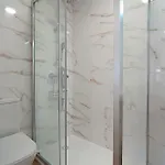 I badrummen finns en separat toalett och en dusch, tillsammans med bekvämligheter som hårtorkar och handdukar.